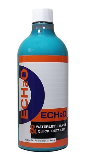 CarPro Ech2O Waterless Wash & Quick Detailer – to koncentrat produktu typu quick detailer który nadaje się do bezwodnego mycia samochodu. Jest on wynikiem 2 letnich badań chemików CarPro. Został zaprojektowany do stosowania z wcześniej nałożonymi powłokami ceramicznymi i kwarcowami oraz woskami. Formuła produktu opiera się o główny składnik powłok zabezpieczających tj. SiO2, dzięki któremu bezpiecznie wyczyścimy, nabłyszczymy i zabezpieczymy powierzchnie zewnątrz pojazdu.