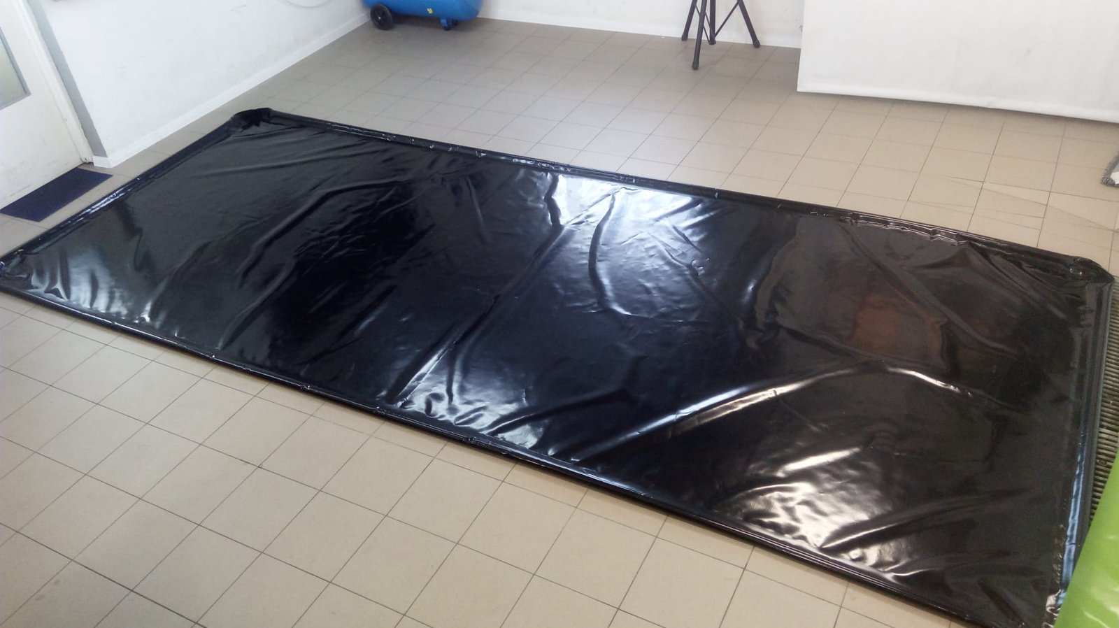 Mata wykonana jest z wytrzymałego materiału o gramaturze 680g/m2, który skutecznie zatrzymuje wodę i nie przepuszcza jej do podłoża. Jest odporna na substancje ropopochodne, dzięki czemu idealnie sprawdza się w garażach. Brzegi maty o wysokości 3 cm, wypełnione pianką, skutecznie zatrzymują wodę w obrębie maty, zapewniając dodatkową ochronę.