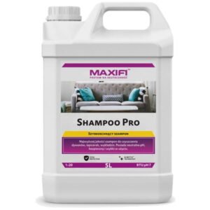 Maxifi Shampoo Pro to najnowszej generacji szampon do czyszczenia dywanów, wykładzin i tapicerek. Wykorzystuje technologię M-Brittle, dzięki czemu brud oraz pozostałości środka zamykane są w mikrokapsułki pozostawiając tkaniny miękkie, miłe w dotyku oraz czyste na dłużej. Shampoo Pro posiada neutralne pH, które stabilizuje kolory i jest bezpieczne dla wszystkich tkanin.