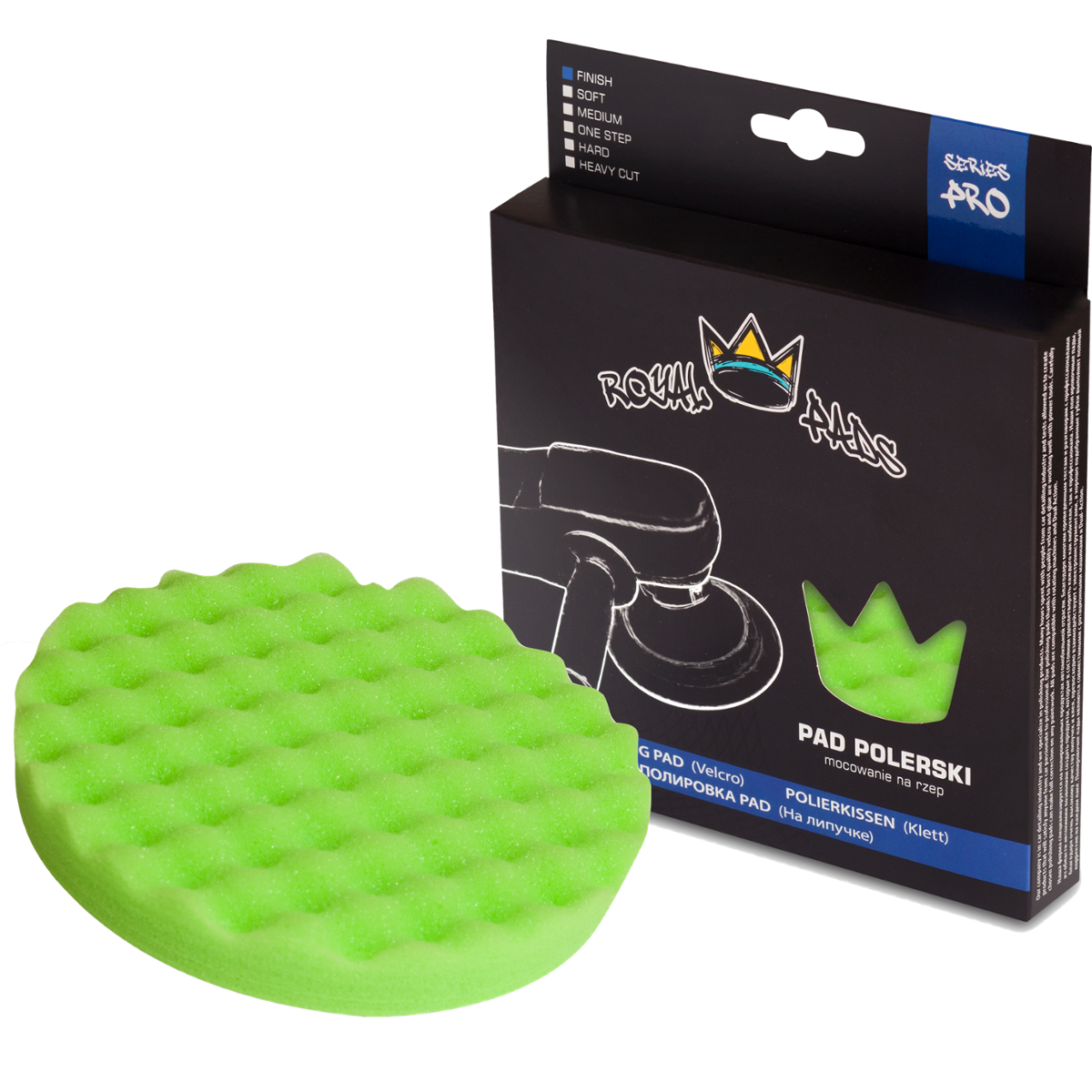 Royal Finish Crown Pad – Bardzo miękka, finiszowa gąbka polerska. Przy końcowym etapie polerowania, bardzo łatwo o spłaszczenie zwykłej gąbki polerskiej co znacznie utrudnia pracę. Dzięki „koronie” na części polerującej problem ten znika, wykończenie lakieru staję się prostsze i jeszcze bardziej efektywne! Pad kompatybilny z maszynami polerskimi rotacyjnymi oraz Dual Action (DA).